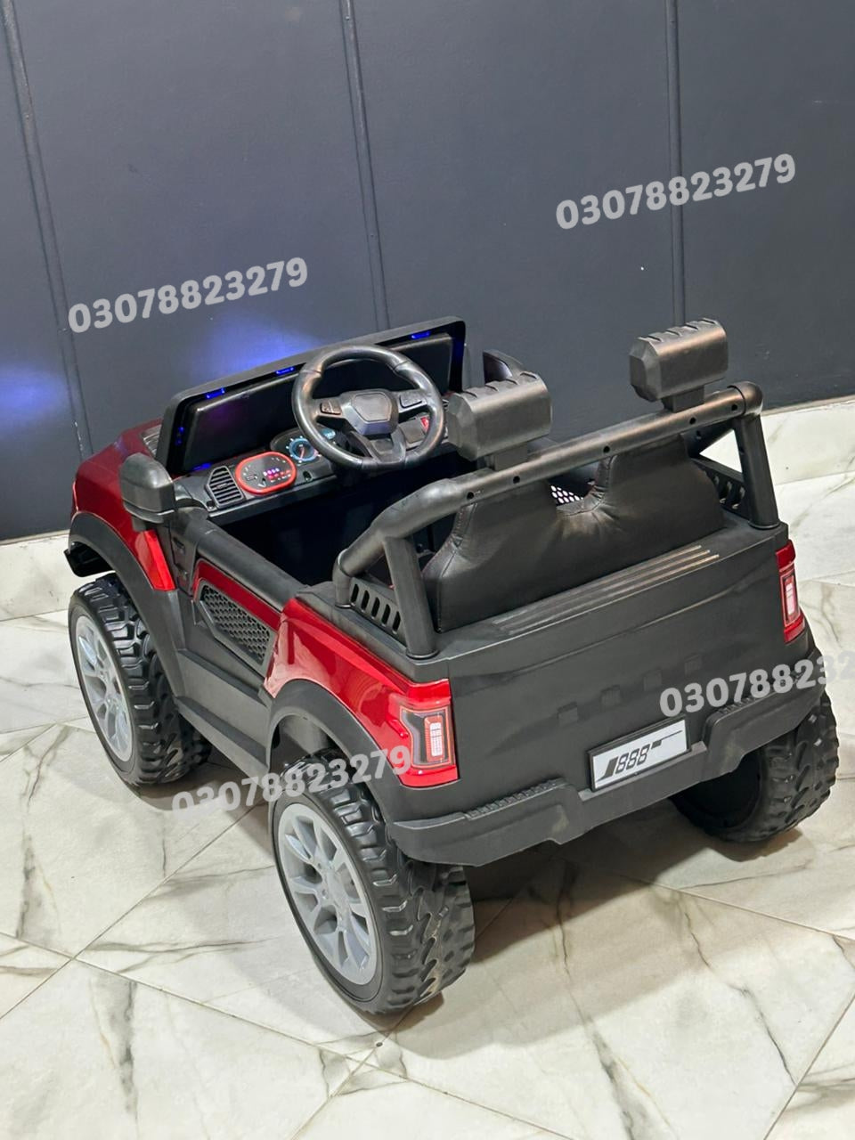 Toyota kids electric jeep Shantoys.pk now launching all new licensed model 03077778631ORDER NOW!๐ Push start/stop๐ MP3 system with AUX & USB six speed ๐ 5 power full motors๐ Battery powered๐ Self-rideable ๐ LED headlights + LED taillights leather seat ๐ Rubber wheel ๐ Amazing colorsAvailable in 3 colors Best for...